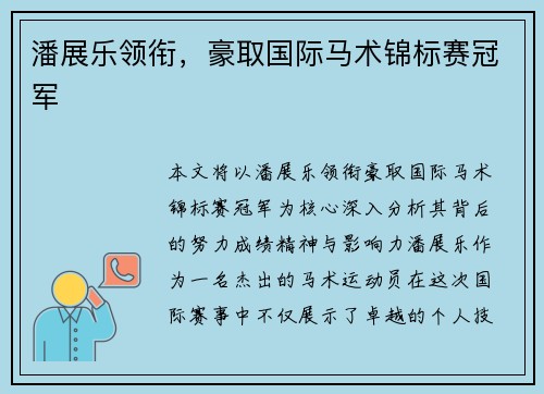 潘展乐凭借着非凡的实力与坚韧的毅力,成功夺得羽毛球单打冠军,并以自信的笑容赢得了观众的喝彩。然而,潘...