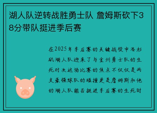 在2025年季后赛的关键战役中,洛杉矶湖人队迎来了与金州勇士队的生死对决。这场比赛的焦点不仅仅是两支豪强球队的碰撞,更是詹姆斯和他的湖人队能否挺进季后赛的生死时刻。最终,湖人队以惊险的逆转战胜勇士队,...